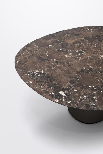 Existiert ein Loch oder nicht? Alles weist darauf hin, dass dies nicht der Fall ist, und dennoch hat ein Loch eine Form und nimmt genauso wie ein Gegenstand Raum ein. Auf die Einladung, eine runde Version der Tisch-Ikone Hole zu kreieren, geht Kensaku Oshiro wieder von diesem Loch aus und nutzt dessen auffallende ovale Form für den Entwurf eines Grundgestells für die Auflage der Tischplatte. Dieses massive und skulpturale Grundgestell ist in den neuen Ausführungen Exclusive Colours lackiert, die das Ergebnis einer Untersuchung des Pulverbeschichtungszentrums von Kristalia sind. Statt eines Tischs ist Holo Pillar also eher der Beweis für die Körperlichkeit von Löchern.