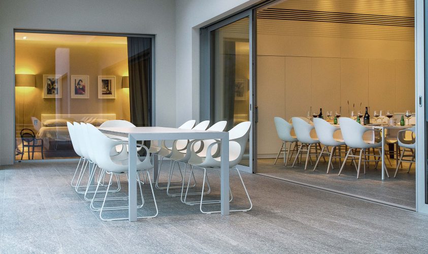 Die Platte besteht aus dünnen Leisten aus Fenix-NTM®: Ein Material mit einer warmen und berühungsfreundlichen Ästhetik, das Leichtigkeit, Stärke und Widerstandsfähigkeit gegen Witterungseinflüsse vereint. Die Struktur ist aus eloxiertem Aluminium gefertigt, einem umweltfreundlichen und für die Verwendung im Freien geeigneten Material. Neben einer reichhaltigen Auswahl von Tischen in verschiedenen Größen umfasst die Kollektion auch eine dazu passende Bank, die als Sitzmöbel oder vielseitiges Einrichtungselement genutzt und mit dem abnehmbarem Kissen Lips ergänzt werden kann.