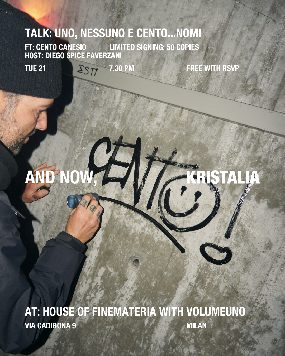 Une talk immersive pour explorer les multiples identités qui composent l’univers créatif de Cento Canesio. Un voyage à la découverte de la culture du graffiti, où le trait graphique devient récit, exploration urbaine et ironie.