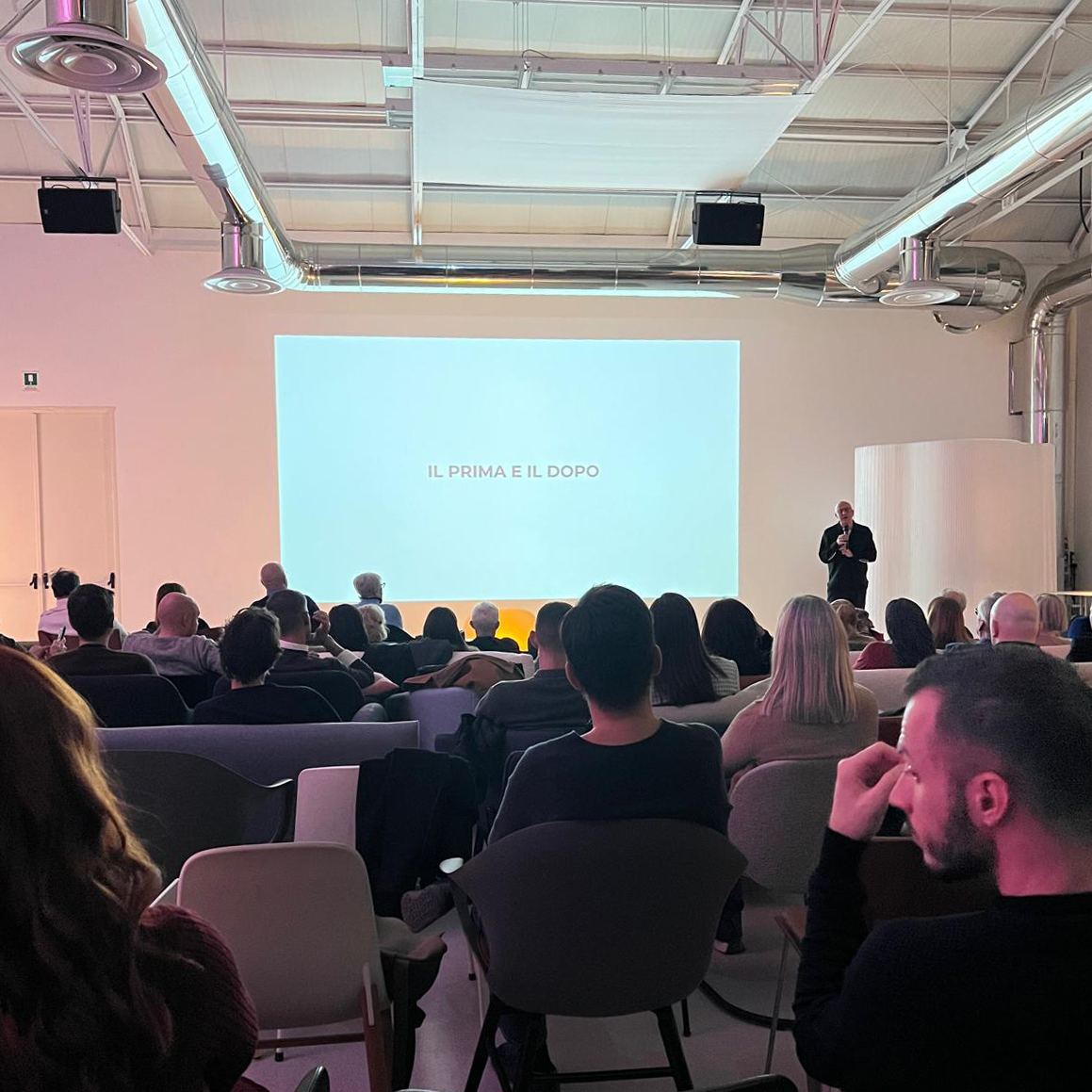 Se non ci fossimo messi a fare mobili, avremmo aperto un jazz club. Ma poiché siamo convinti che le opportunità vanno colte tutte, e le passioni vissute fino in fondo, abbiamo dedicato uno spazio alla musica, e più in generale alla cultura, dentro la nostra sede. L’abbiamo progettato perché fosse bello, accogliente e non convenzionale. Uno spazio industriale in una zona industriale che ospita chiunque abbia voglia di ascoltare della buona musica, vedere un film o un documentario, assistere alla presentazione di un libro, visitare una mostra d’arte o design in una sala realizzata in collaborazione con marchi importanti del mondo del sound design, eccellente per la diffusione musicale e visiva. Il progetto è curato internamente, dalla direzione artistica all’organizzazione: è il nostro modo di dire grazie alla comunità e al territorio che ci hanno permesso di crescere.